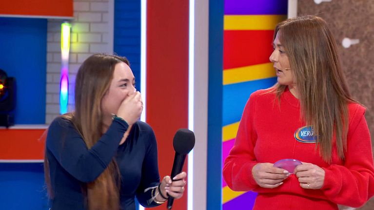 Verónica, concursante de 'El tiempo justo' reacciona al comentario de su hija y le reprende que hable bien.