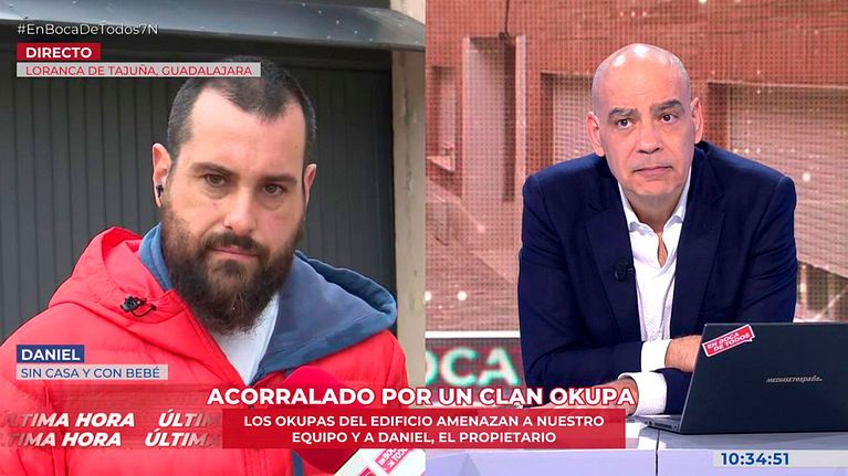 Daniel compró una casa en Loranca de Tajuña, Guadalajara, tras separarse. Aprovechando su ausencia, unos okupas entraron y cambiaron la cerradura. La Guardia Civil no los ha desalojado y ahora Daniel vive en la calle con su bebé. Al intentar hablar con los okupas, el equipo del programa fue amenazado. Uno de ellos afirmó que, incluso si agredía o rompía la cámara, al día siguiente estaría libre.