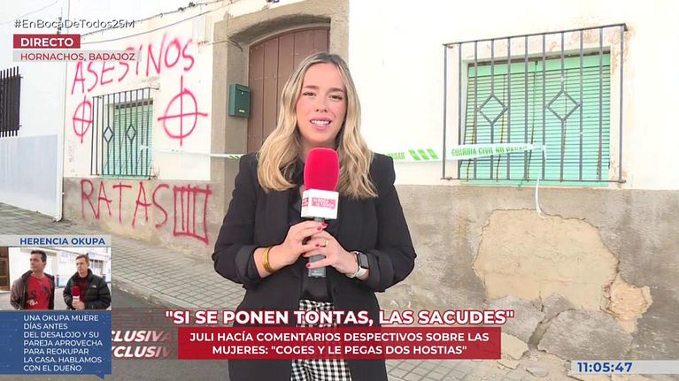 En directo, desde la puerta de la casa de los hermanos, en Hornachos (Badajoz), Ana Gómez ha informado sobre las últimas novedades del caso de la desaparición y muerte de Francisca Cadenas. Según ha podido saber la reportera de ‘En boca de todos’, los presuntos responsables han sido trasladados a otro centro penitenciario después de que uno de ellos sufriera una fuerte agresión.