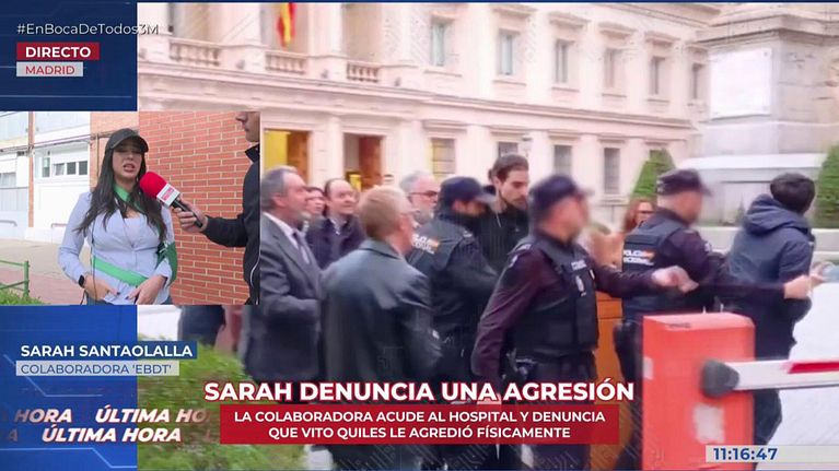 La colaboradora de 'En boca de todos', Sarah Santaolalla, comunicaba en directo que ha sido agredida por Vito Quiles y el matón que le acompañaba, razón por la cual no ha podido asistir al plató. "Ya no es violencia verbal o acoso en redes, es que nos están agrediendo", comentaba. Además, seguimos hablando con muchos de los españoles atrapados en Dubai.