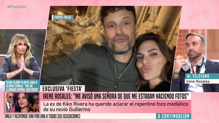 Irene Rosales entra en directo en 'Fiesta' y sale en defensa de su chico, Guillermo. Además, Raquel Bollo se pronuncia, en plató, sobre la peor noche de Isa Pi en Cantora y fatídico episodio de la manguera.