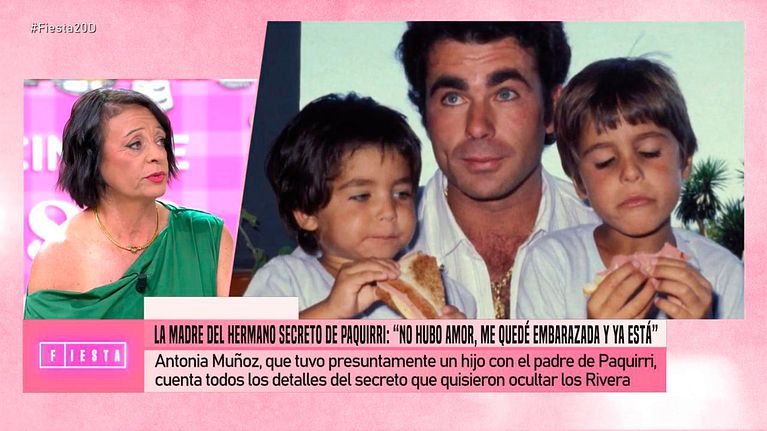 Antonia Muñoz, madre del hermano secreto de Paquirri, nos contó que se quedó embarazada de Antonio Rivera cuando tenía tan solo 18 años. Ha permanecido callada muchos años, pero ahora quiere hablar ya que se ha sentido humillada y abandonada por tener que criar a su hijo ella sola. Hoy, Antonia está dispuesta a destapar todos los secretos de la familia Rivera en 'Fiesta'.