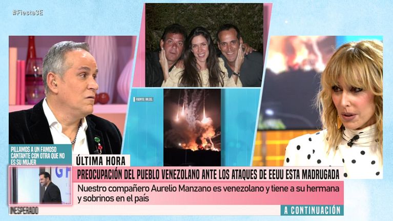 Tras la delicada situación en Venezuela, Aurelio Manzano, colaborador de Fiesta, cuenta cómo lo está viviendo su familia en el país. Además, María Edite Santos, madre de Javier Santos, presunto hijo de Julio Iglesias, llama en directo al cantante