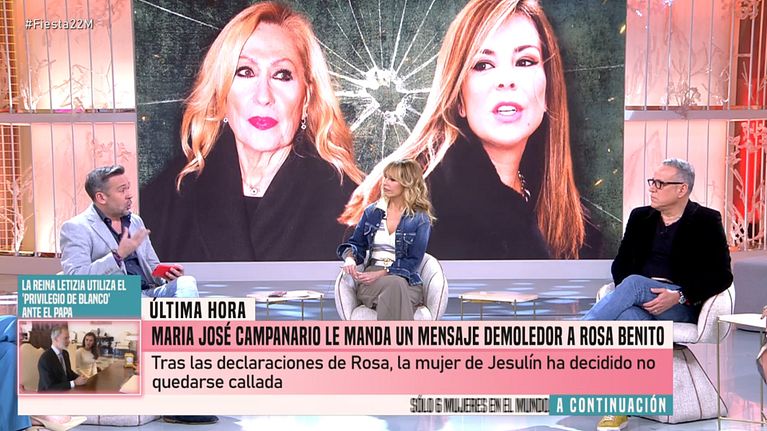 Guerra abierta entre Rosa Benito y María José Campanario. La mujer de Jesulín de Ubrique se ha mostrado muy crítica con la excuñada de Rocío Jurado después de la entrevista que dio en '¡De viernes!', en la que criticó la actitud de su sobrina Rocío Carrasco con el resto de la familia. Además, 'Fiesta' informa, en exclusiva, de que la venta de Cantora, la finca de Isabel Pantoja, ya está vendida.