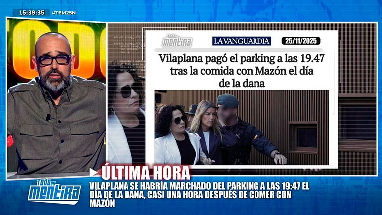 La periodista Maribel Vilaplana pagó el parking donde dejó el coche mientras comía con Carlos Mazón el 29 de octubre de 2024, el día de la DANA de Valencia, a las 19:47 horas. Según los datos aportados al Juzgado por la empresa, ese importe solo coincide con uno de los vehículos que salió después de que la periodista afirmara haberse despedido del presidente, sobre las 19 horas.