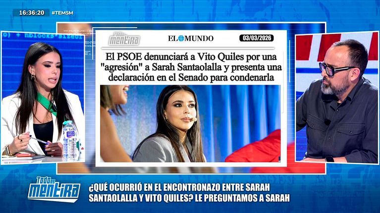 La colaboradora Sarah Santaolalla se ha mostrado visiblemente emocionada en 'Todo es mentira' al relatar el episodio de tensión que vivió recientemente con el agitador ultra Vito Quiles. Un incidente que terminó, según asegura, con lesiones físicas y una denuncia formal.